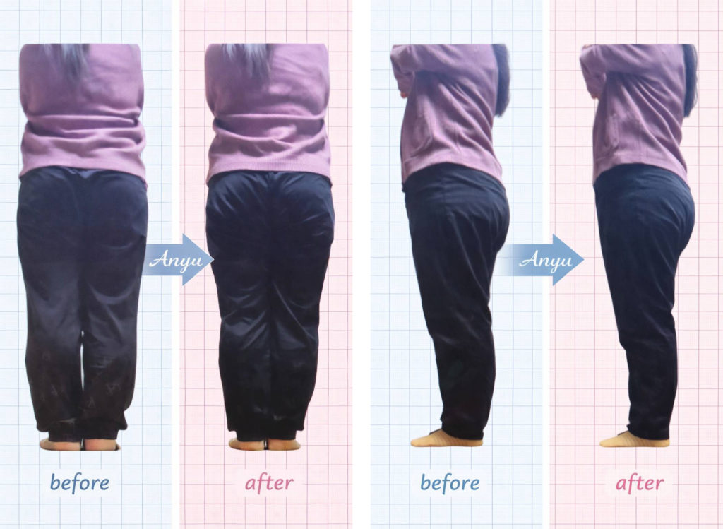 子供の頃から下半身が太いと思って諦めていましたが、正しい姿勢になると自然と引き締まってくるものだと知りました。今では、もっと綺麗な姿勢になりたくて、施術を続けています。